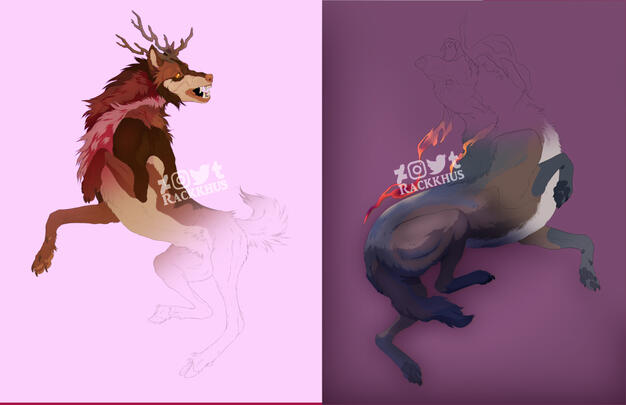 I am not that active as an artist and mostly draw for my own fun. My main focus is feral canines and creatures, haven't bothered to learn anything else. My art doesn't have distinguishable themes, though I enjoy angst and can't draw backgrounds.